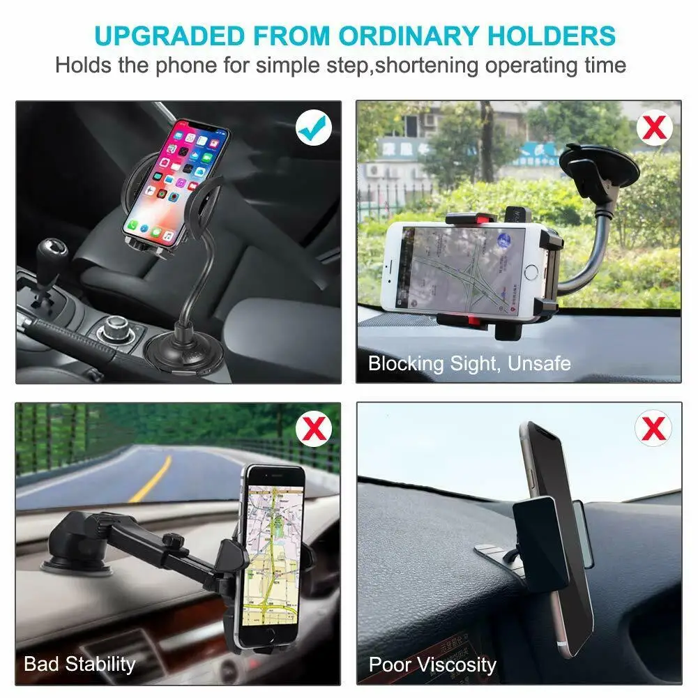 Car Cup Holder Phone Mount Adjustable Gooseneck Automobile Phone Car Mount for iPhone 11 Pro/XR/XS Max/X/8/7 Plus/6s/