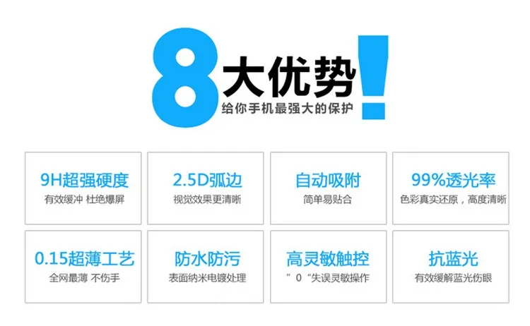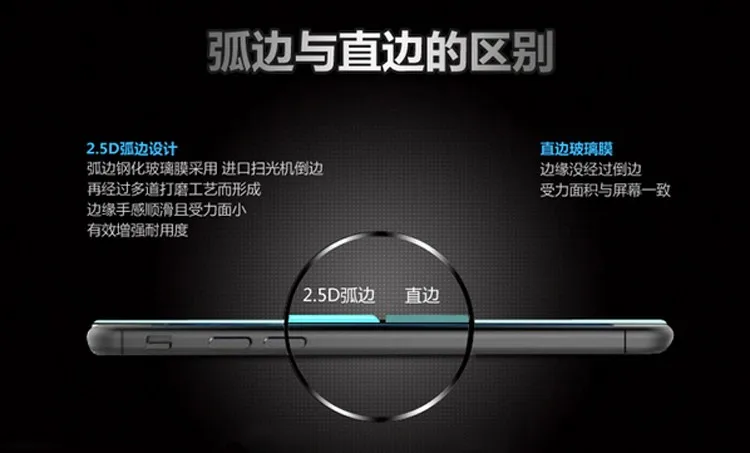 2.5D design side arc, arc edge of toughened glass membrane adopts the imported sweep light machine, go way too much grinding process, the edge feel is smooth and the bearing surface is small, can effectively enhance durability
