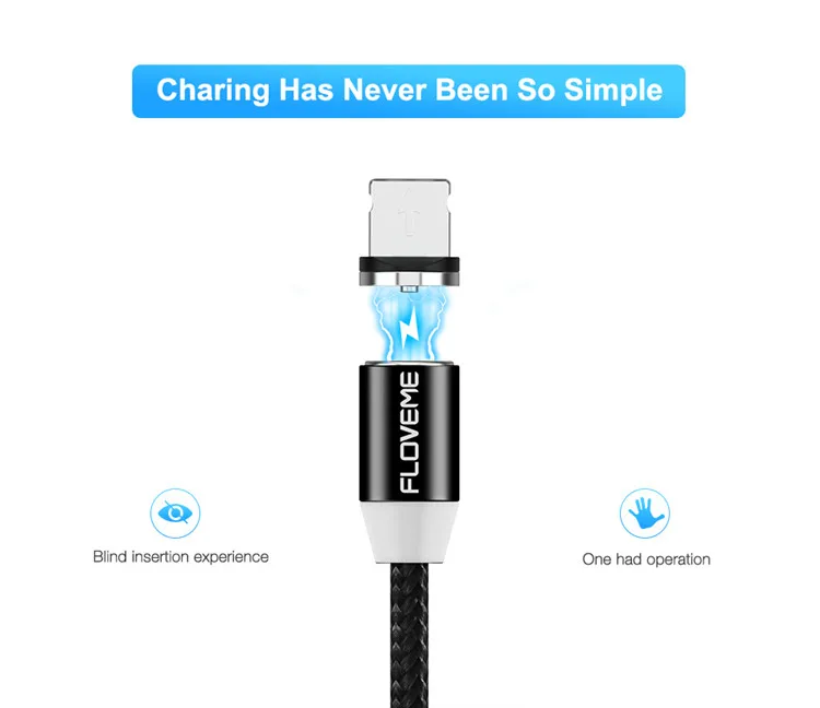 Free Shipping FLOVEME 1M Magnetic Mobile Phone Cable for iPhone Micro USB Type C Cable Magnetic Charger