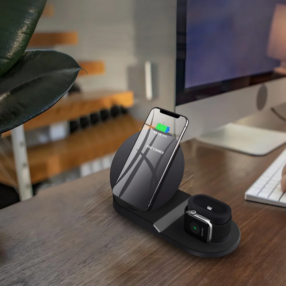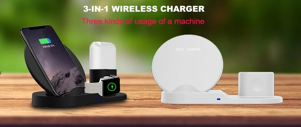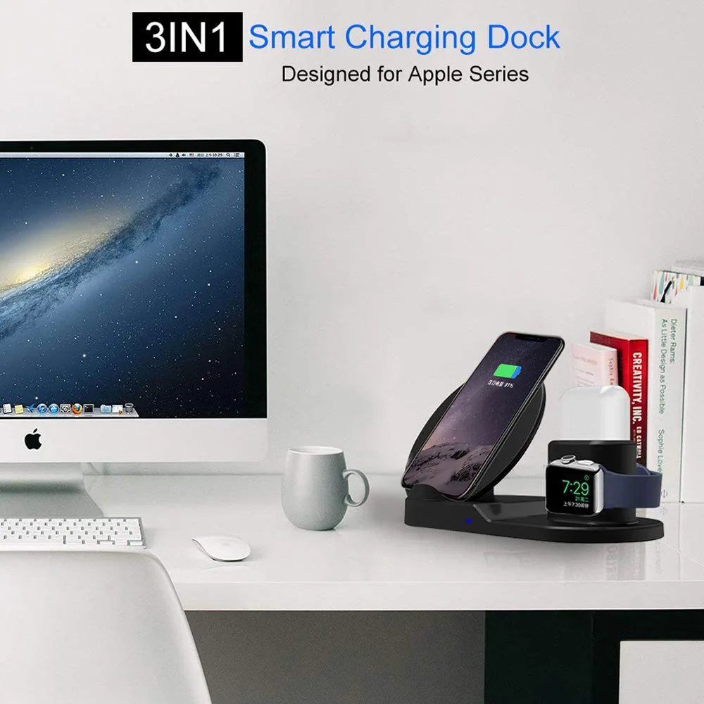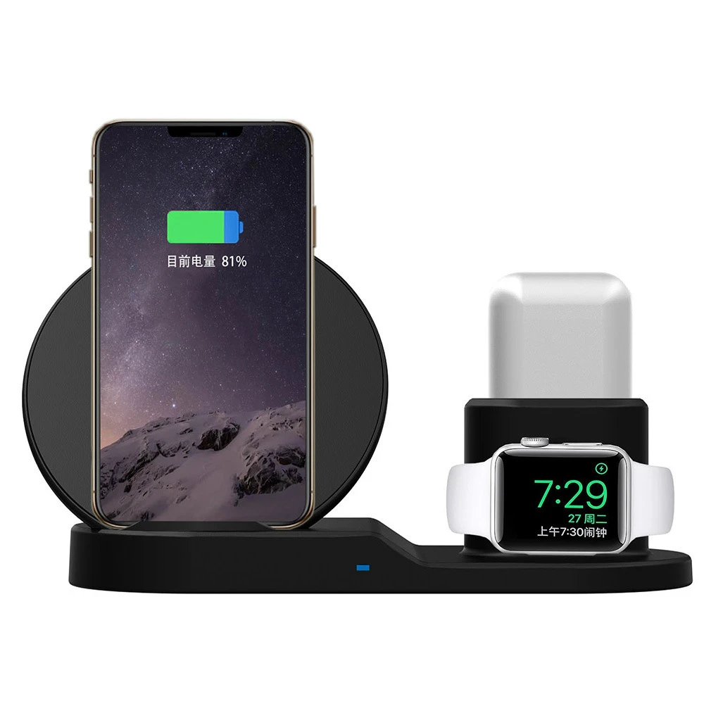 3 in 1 Multifunctional Charging Stand for apple: The Wireless charger is specially designed for charging for AirPods for iPhone for AppleWatch in one place. Fast Qi Wireless charging pad charges for iPhone X/8/AppleWatch without cable.