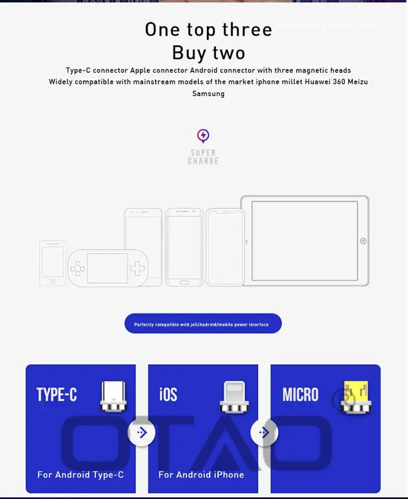 OTAO For Cable Converter Magnet For iphone Android Type C Cable Magnetic Adaptor Fast Charging Cable Connector Magetic